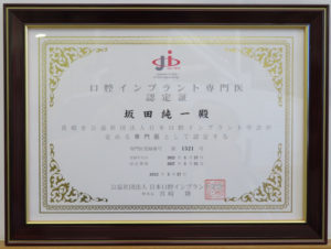規定数以上の研修会に参加し、ある一定以上成功基準を満たしたインプラント症例を提出して検定を受けて「合格」とされ、初めて認可される「認定医」を頂けたことは、今後の診療においても大きな自信になりました。