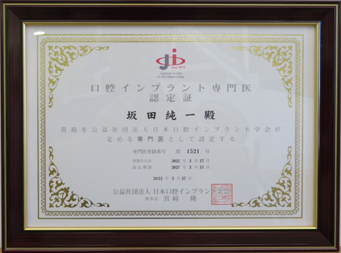 日本口腔インプラント学会の専門医資格を取得しました。