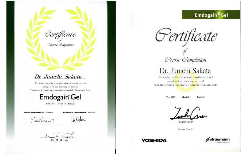 当院における歯周組織再生療法は、国(厚生労働省)の認可を受けた薬剤(エムドゲイン®)を使用し、安心・安全な治療を行っております。